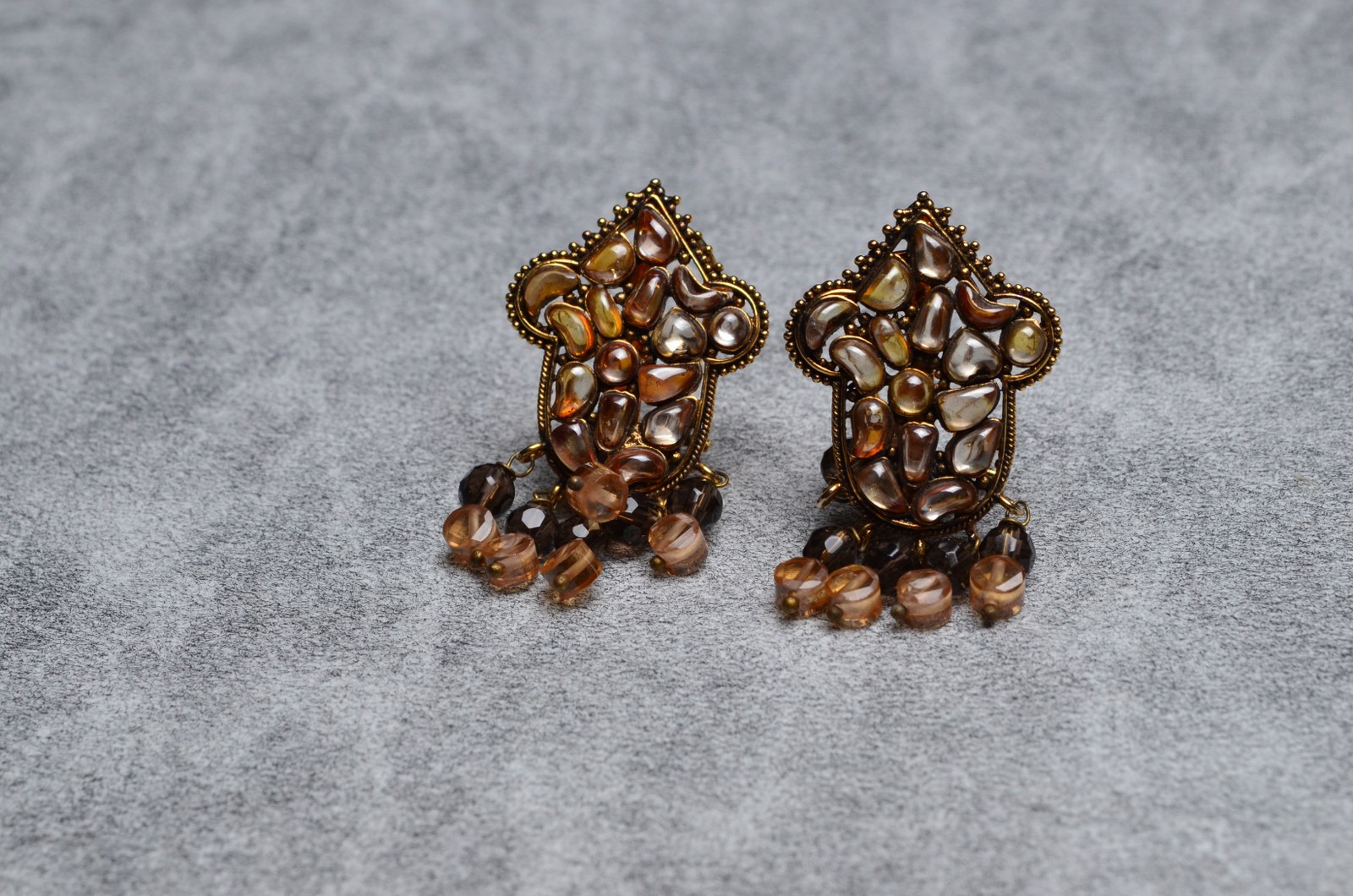 Sterling silver (925) earring gold antique polish with uncut dark brown and champagne zircon