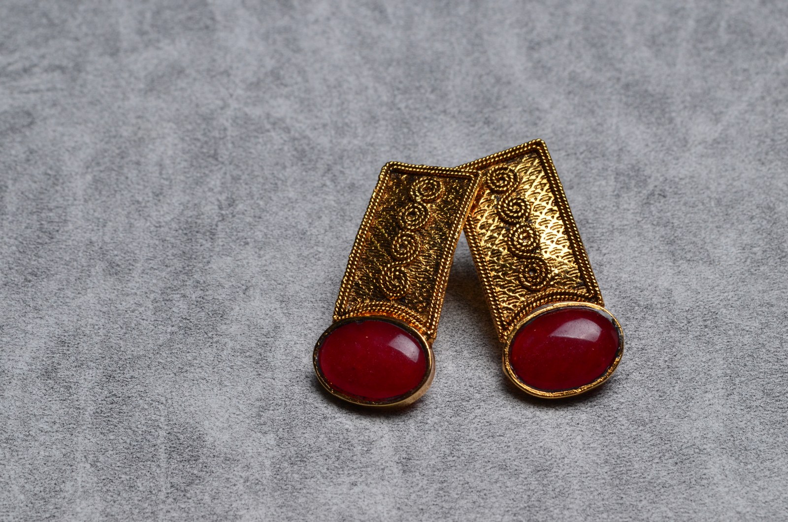Sterling silver (925) earring gold antique polish with cheetam ruby.