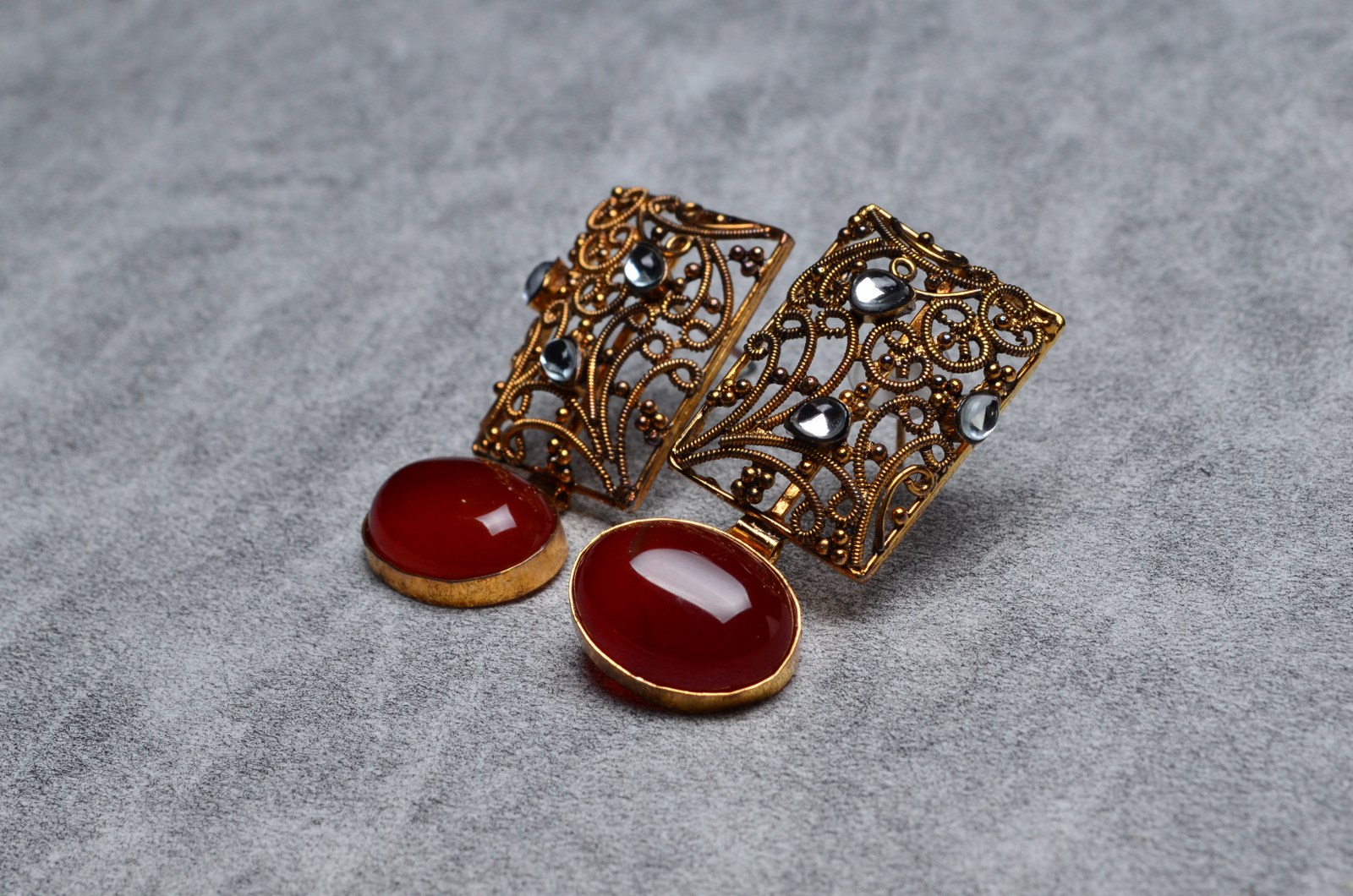 Sterling silver (925) earring gold antique polish with kundan work and cheetam ruby stone.