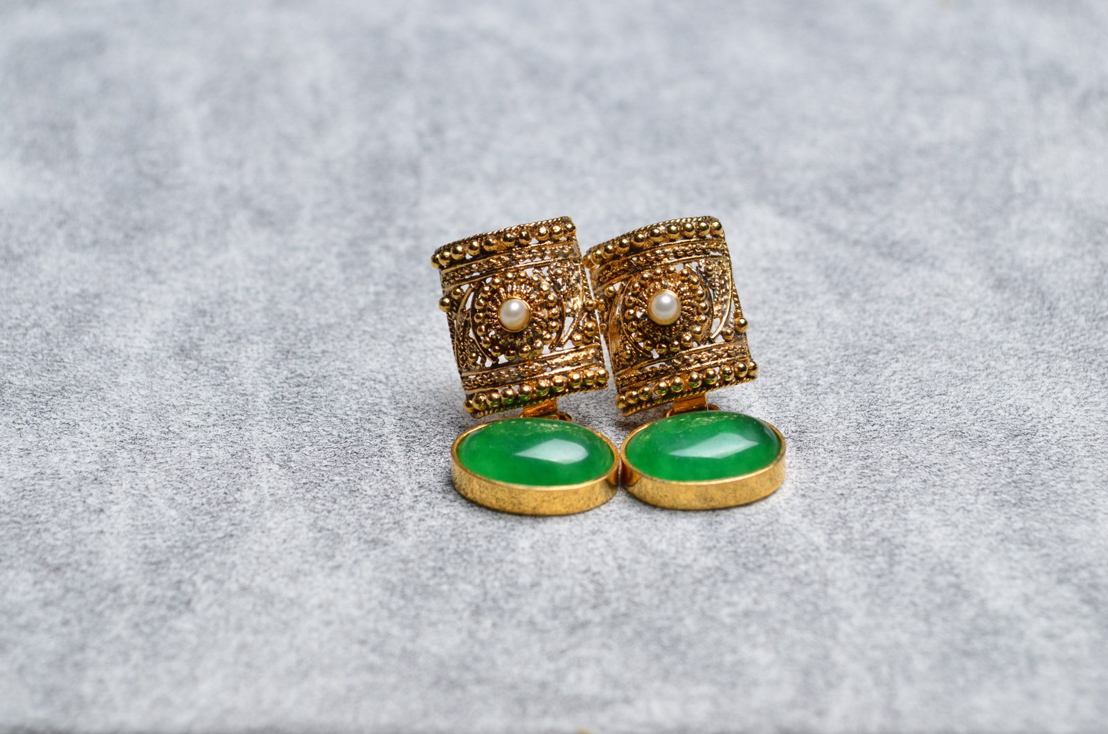 Sterling silver (925) earring gold antique polish with pearl and jade.